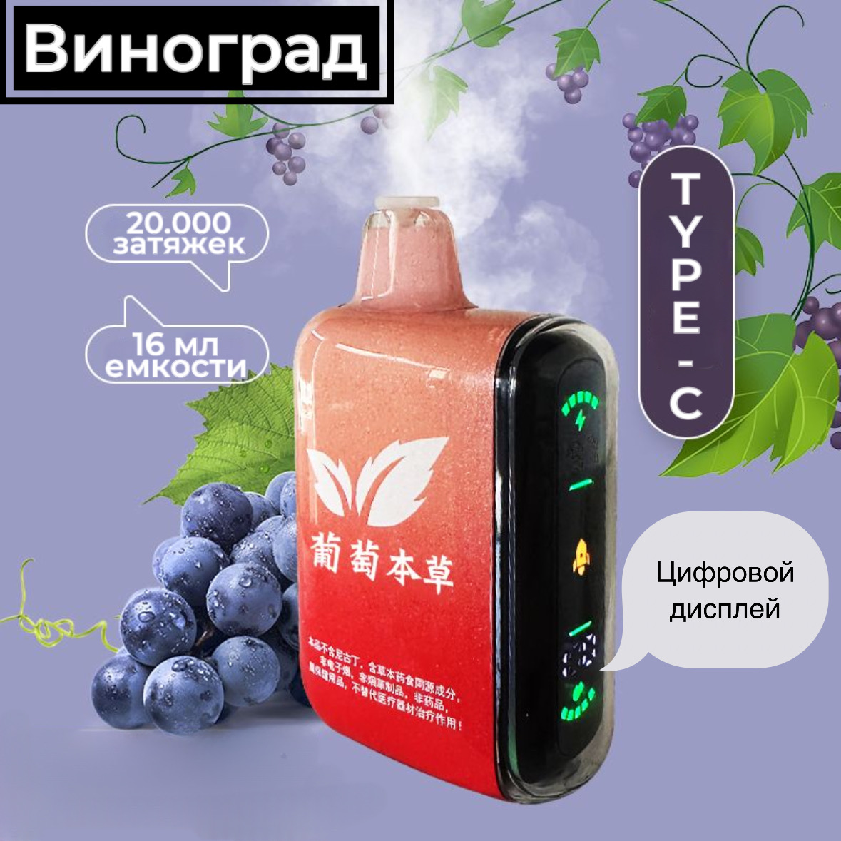 Это качественная китайская копия популярного бренда, которая приятно удивляет своим исполнением и вниманием к деталям. Корпус выполнен аккуратно, с глянцевым покрытием и плавными формами, удобно лежит в руке и выглядит дорого. Сборка прочная — ничего не люфтит, кнопки и элементы расположены продуманно. Вкусопередача мягкая и насыщенная, с естественным послевкусием, а пар плотный и густой, что делает процесс максимально комфортным. Отличный вариант для тех, кто ищет достойную альтернативу оригиналу без переплаты, но с тем же ощущением качества и стиля.